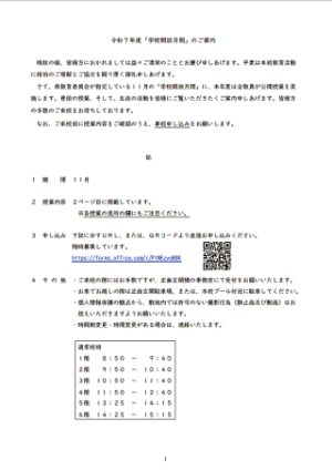 11月は学校開放月間です。この期間中にに新翔高校の教全員が公開授業を行います。